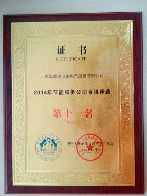 2014中国节能减排大会暨百强榜发布会于2014年8月26日在深圳举行。本次论坛主题为:绿色工业创新与发展。会议发布了2014年节能服务公司百强研究报告以及百强榜榜单。亚美(中国)荣获第十一名。
