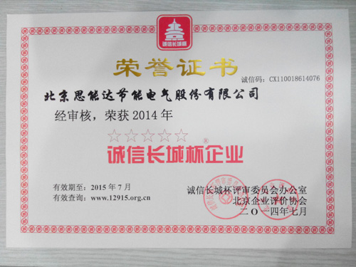 2014年7月11日,经北京企业评价协会初审、诚信长城杯评审委员会办公室综合评审、专家组联合审议,亚美登陆官网成为“2014年首批诚信长城杯创建企业”。